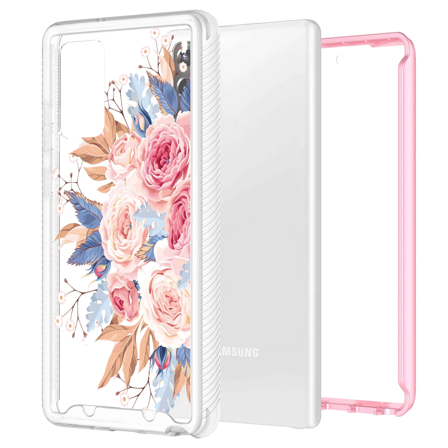 Samsung Galaxy S21 plus 5G Case, Graphic Design Shockproof Impact Resistant Protective Full-Body Rugged Clear Hybrid Bumper Case for Samsung Galaxy S21 plus 5G (Pink Flower)