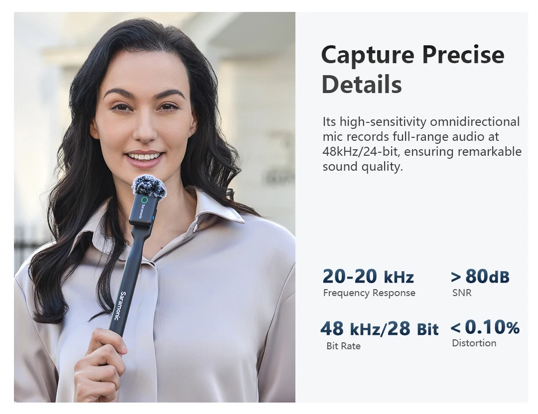 - Wireless Lapel Mic Sampling/ Bit Rate: 48kHz / 24bit