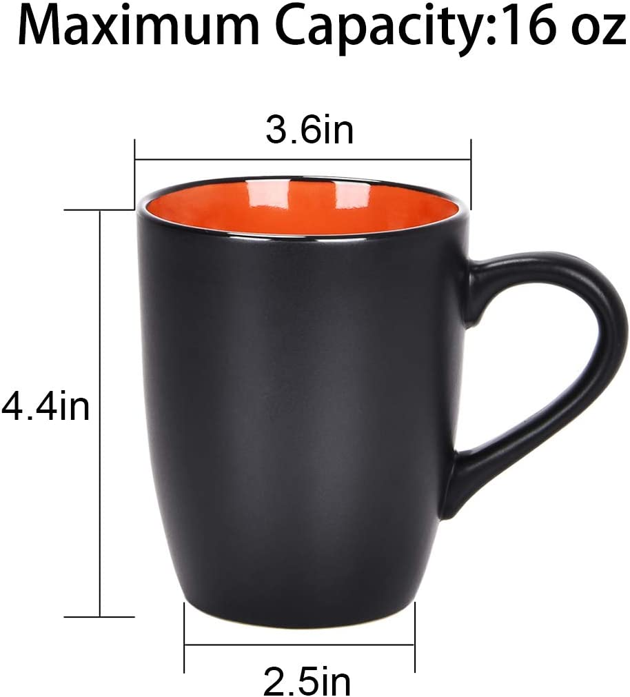 - SIMPLE DESIGN FOR DAILY USING: If you’re looking for a good basic cup like the kind you’d get in a nice cafe, have a try ours! The 16 oz black mug set with simple style design offers a minimalist look and the sheen on the matte black outside, fit for daily hot coffee tea or water with family or friends, also suitable for restaurant or bar.