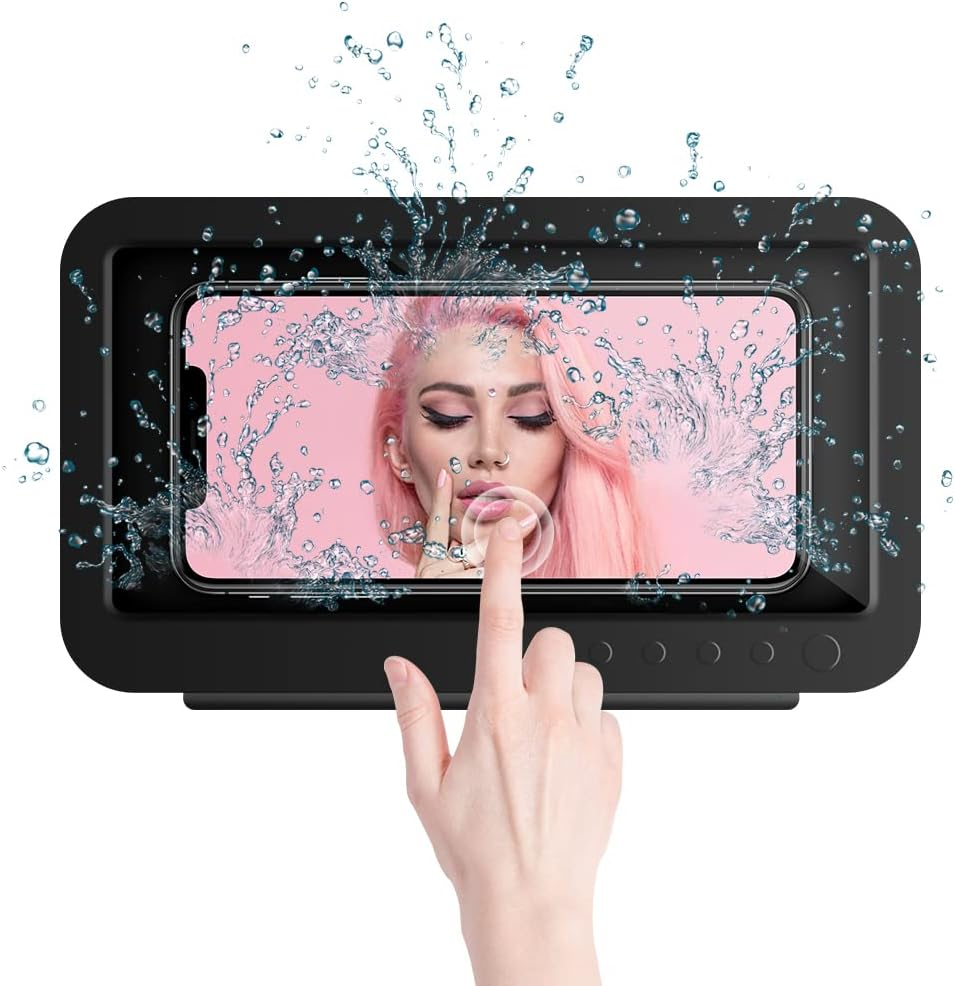 Shower Phone Holder Waterproof Shower Case Bathroom Case for Phone anti Fog Touch Screen 360° Rotation Compatible with Mobile Phones under 7 Inches (Black)