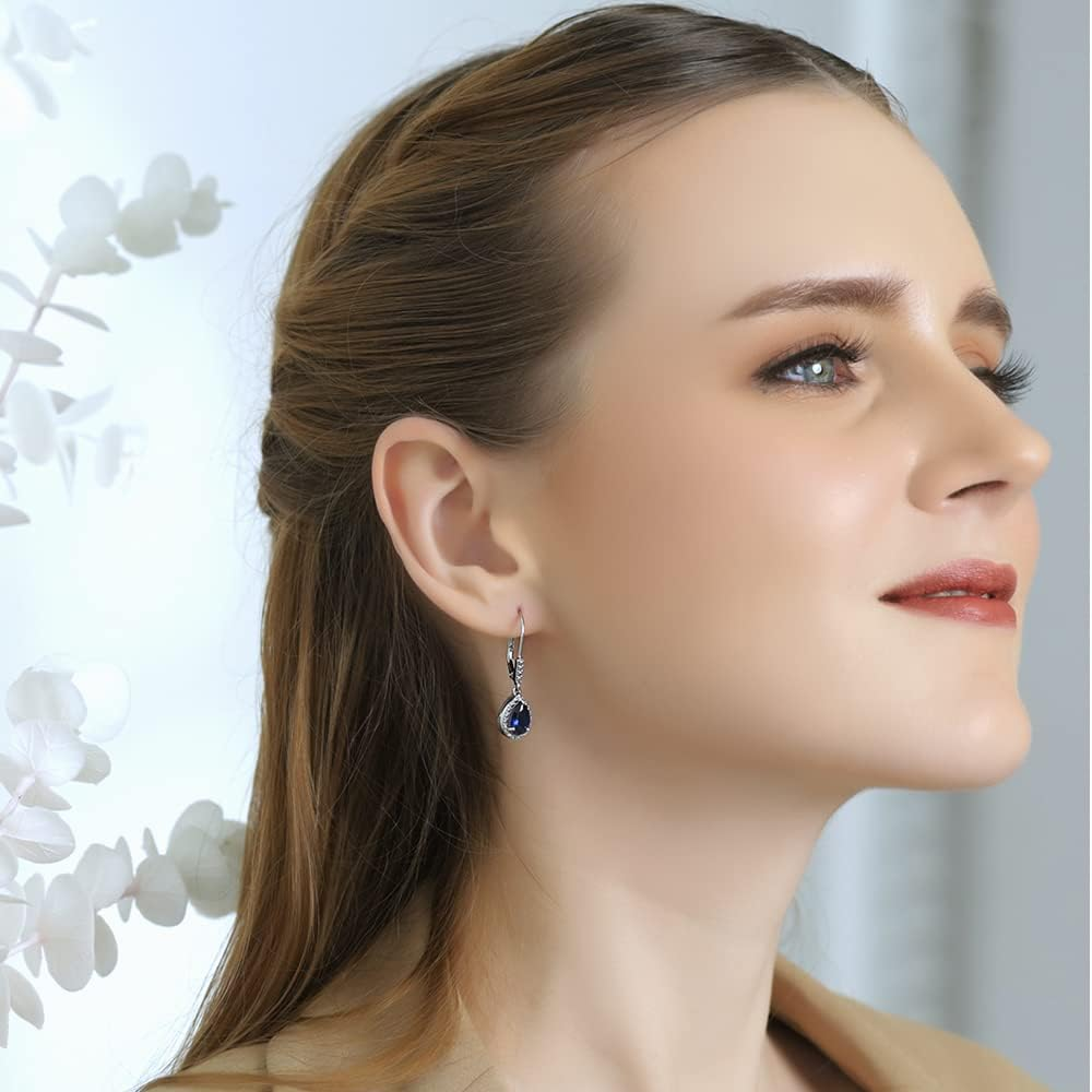 Sterling Silver Genuine, Created or Simulated Gemstone Leverback Teardrop Dangle Earrings for Women Bridesmaids