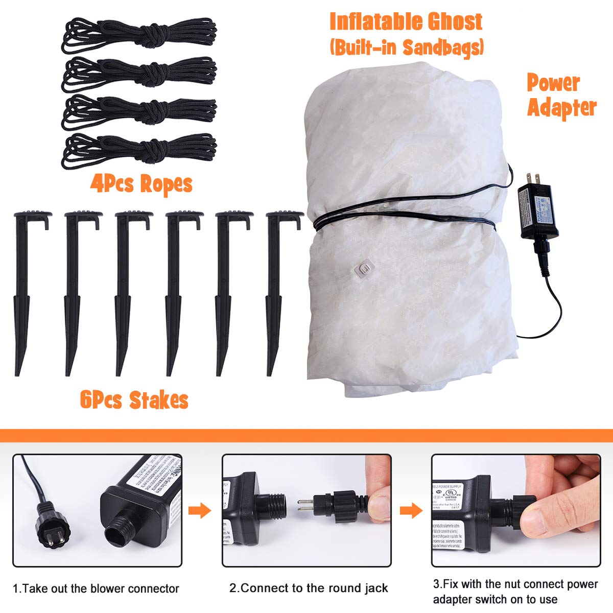 8 color LED lights, this ghost inflatable to create a more horrible atmosphere at night.