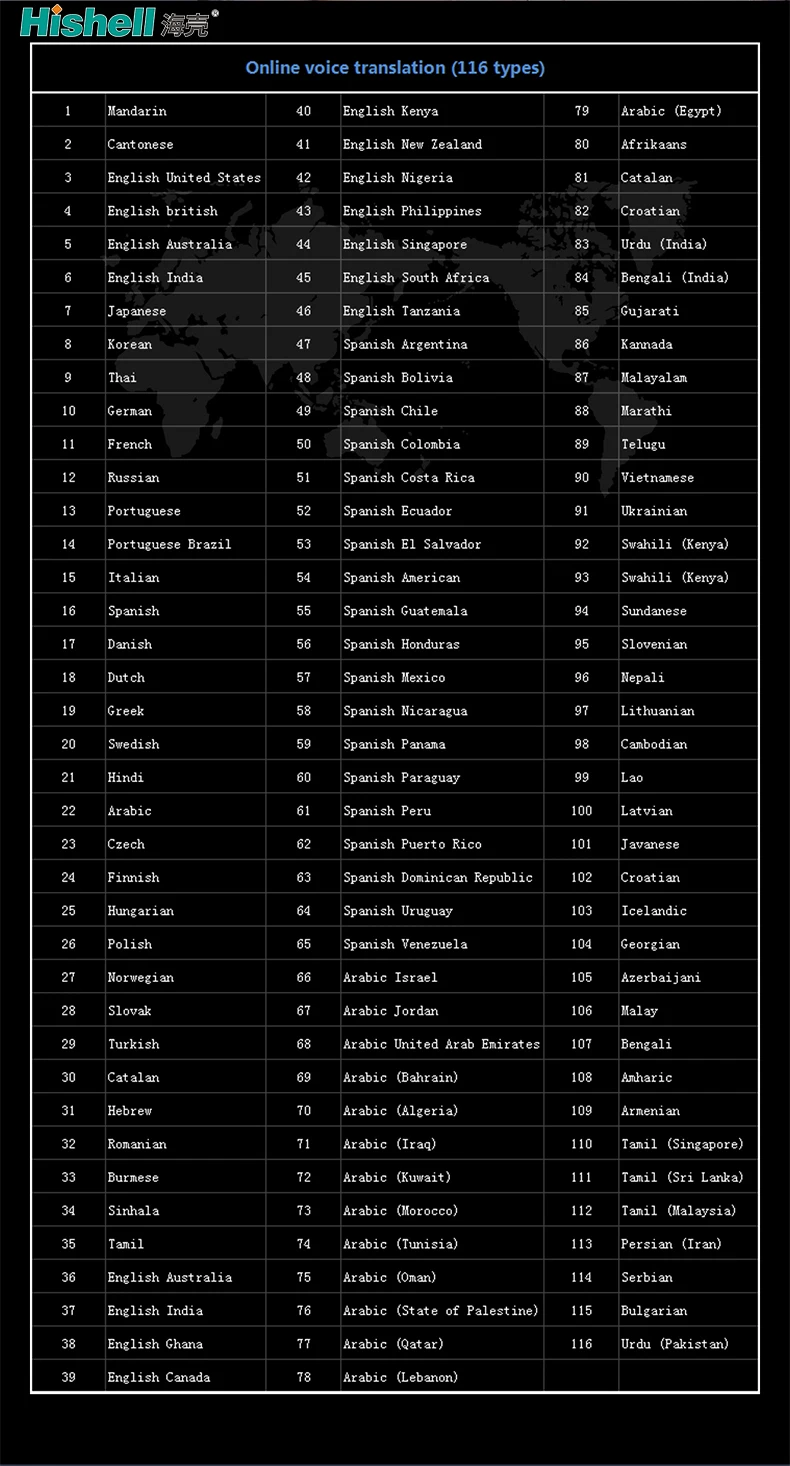 | Translator languages | 116 kinds of languages |