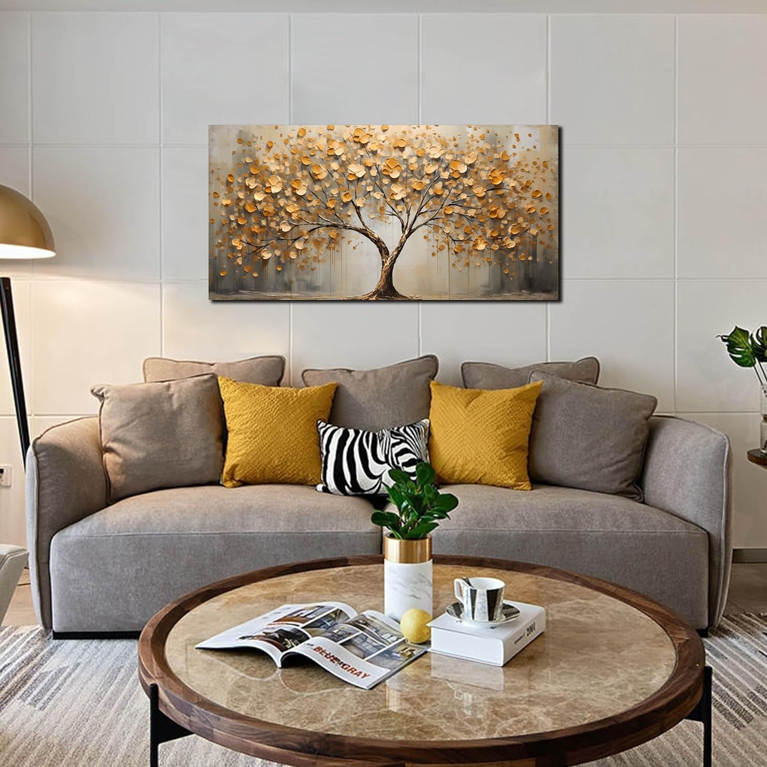 - HI-Q MATERIAL: High quality, HD prints on premium canvas, waterproof canvas, UV resistant, fading resistant indoor. Tree art pictures for wall in living room,gold canvas wall art for bedroom