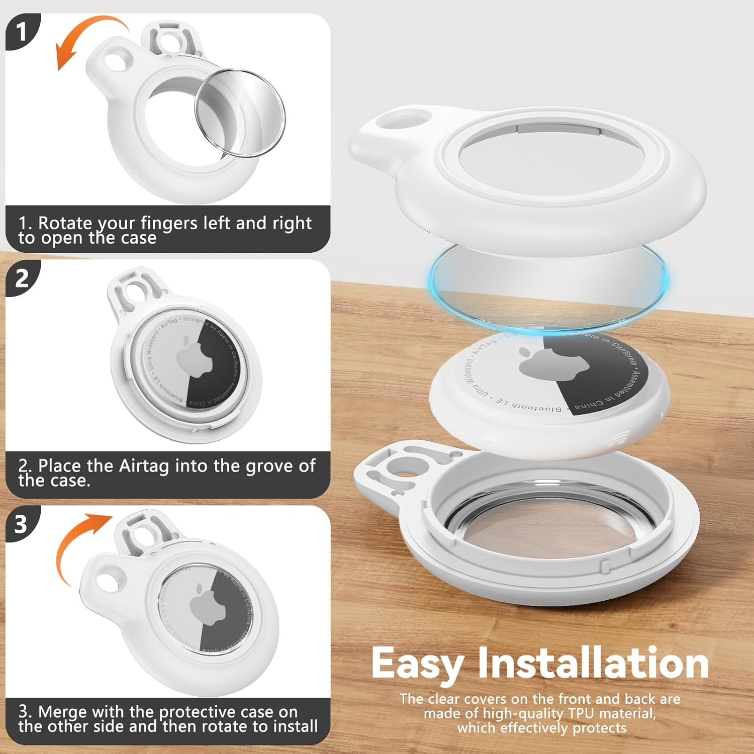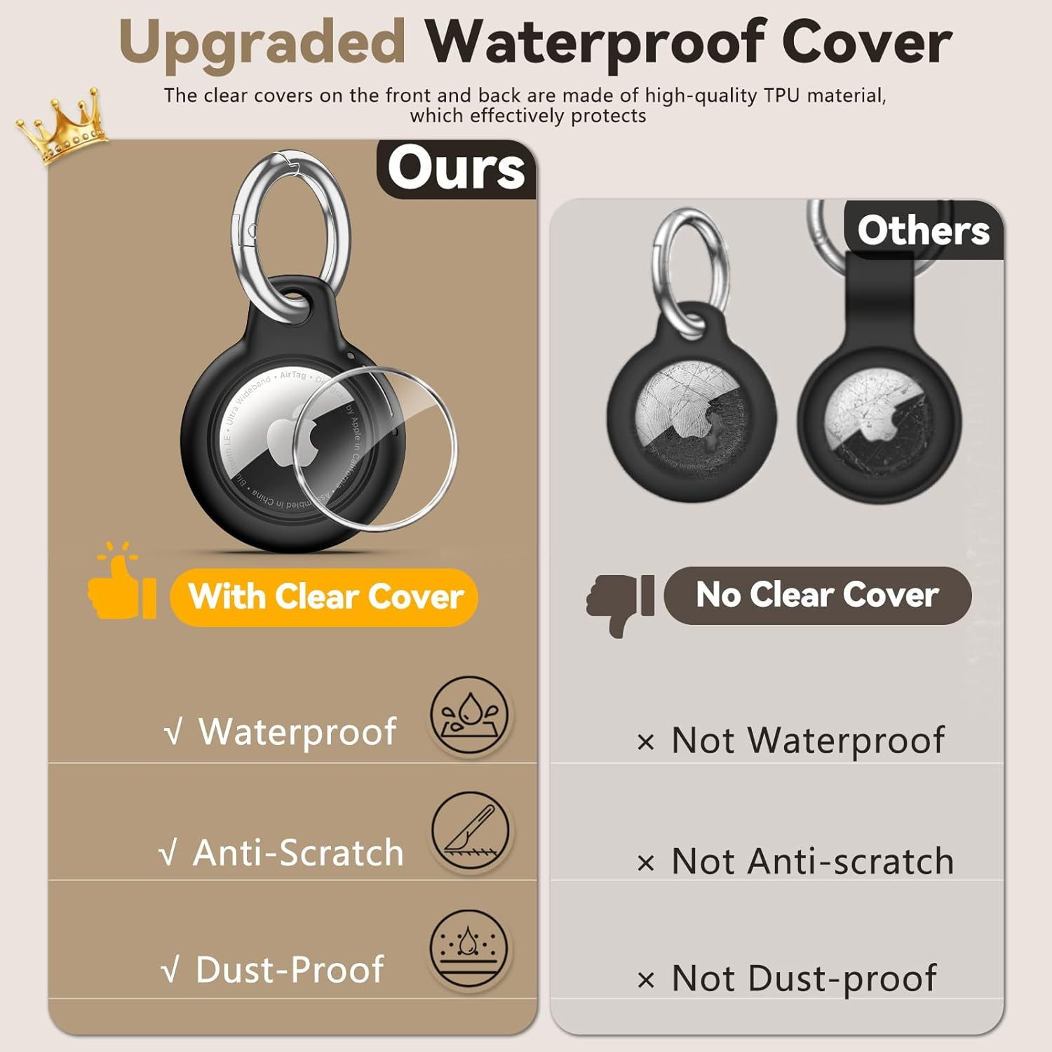 • IPX8 Waterproof: We added a double-sided clear TPU waterproof cover design, which can effectively isolate moisture and dust, protecting AirTag from environmental factors such as moisture and dust. And it has been tested more than 2,000 times to ensure sealing and waterproof performance. In addition, it is easy to clean and anti-fingerprint.