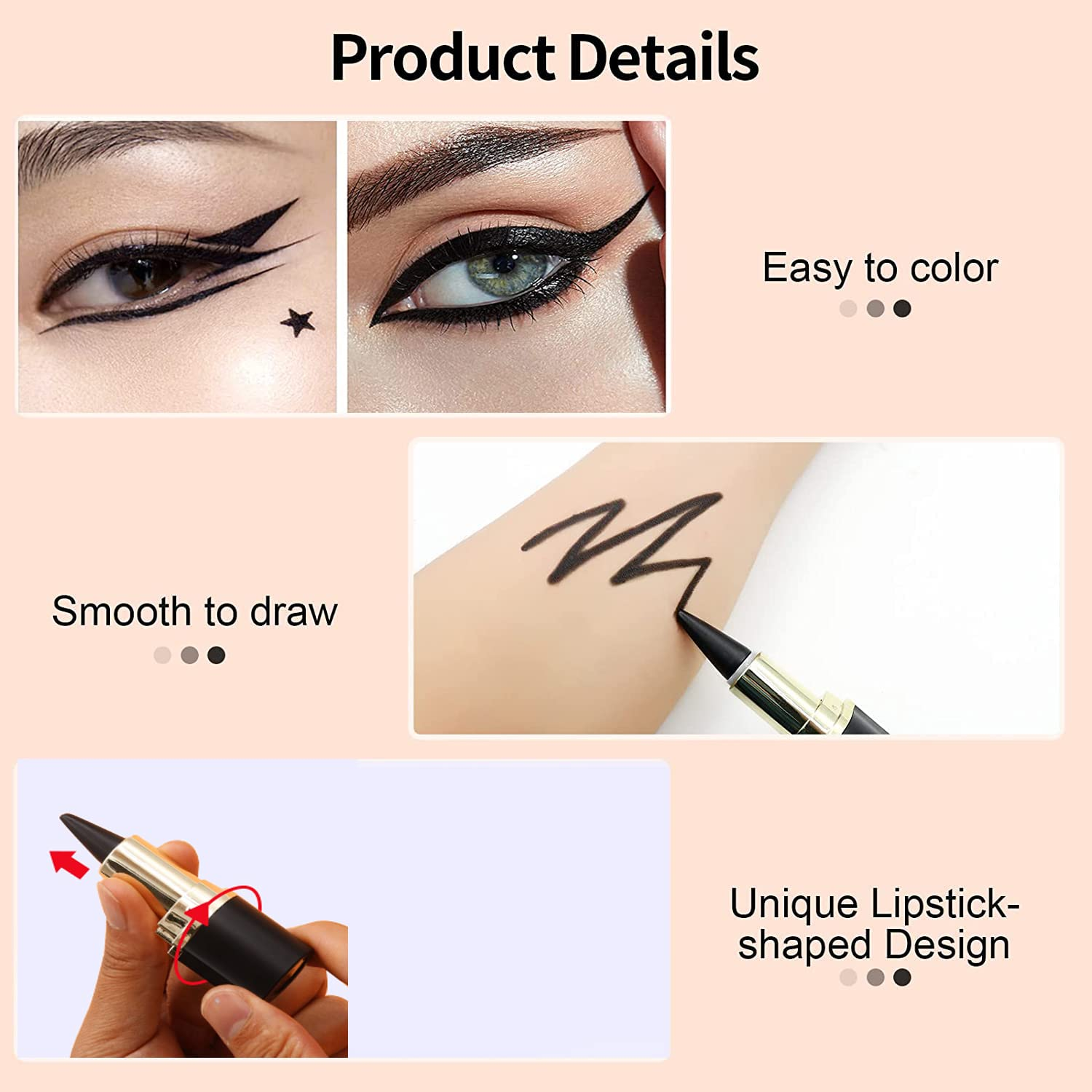 • 【Lieferumfang】:1 * Schwarzer Eyeliner,Größe: 8 x 2,4 x 2,4 cm.