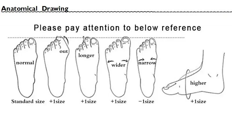 please allow error about ± 5MM.Compare the size chart with your feet length carefully before ordering.