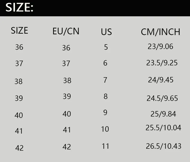 Package includes:1 Pair Shoes(Not Including Shoebox)