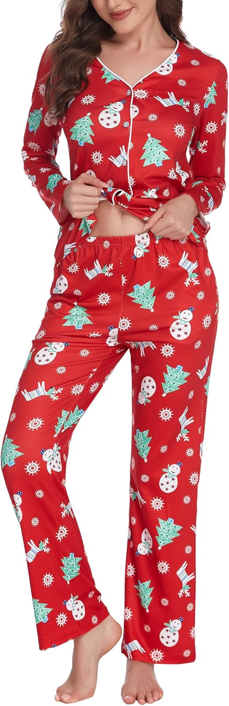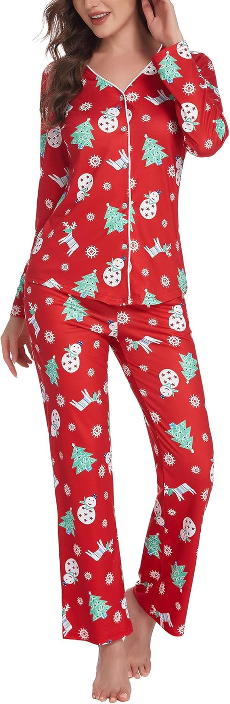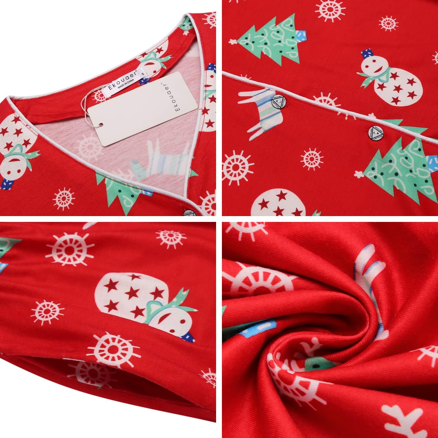 Ekouaer Pajamas Women’s Long Sleeve Sleepwear Button Down Pj Lounge Sets Soft Womens Christmas Pajamas Set