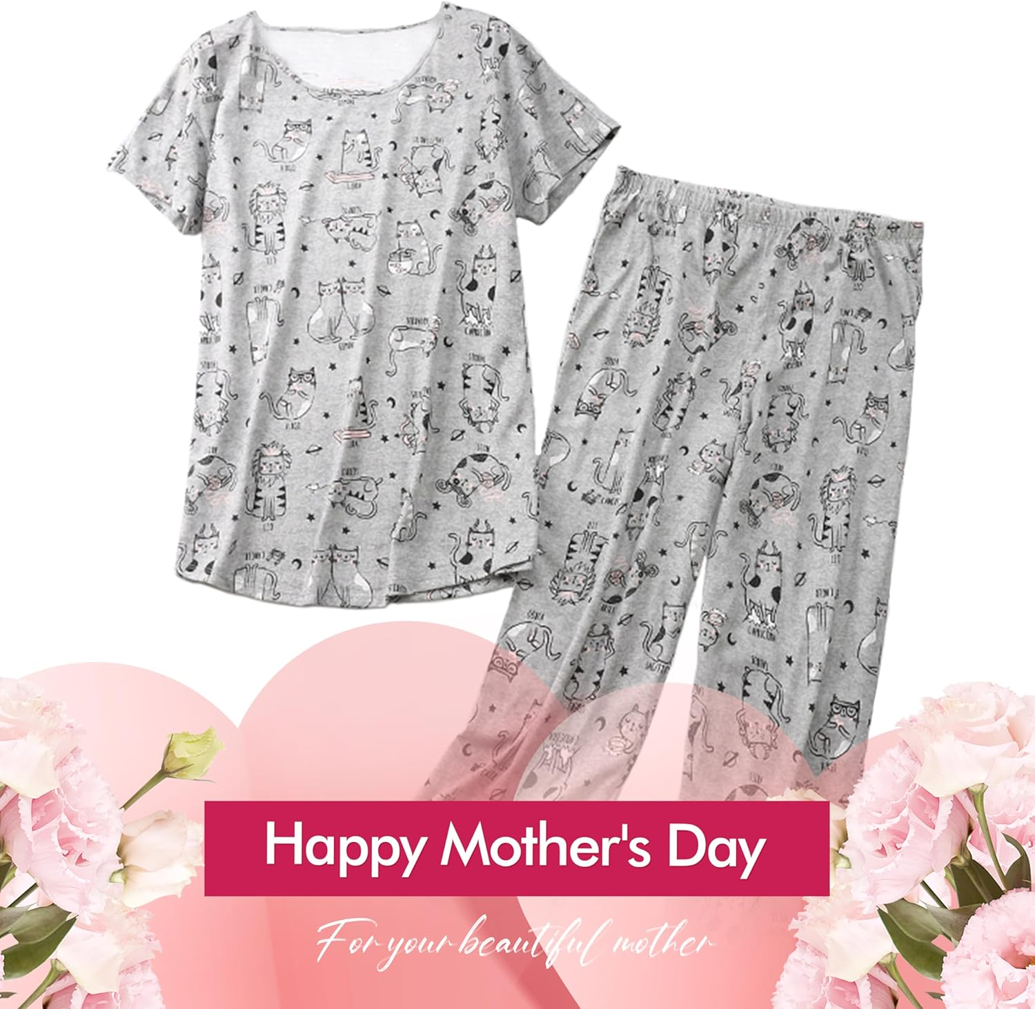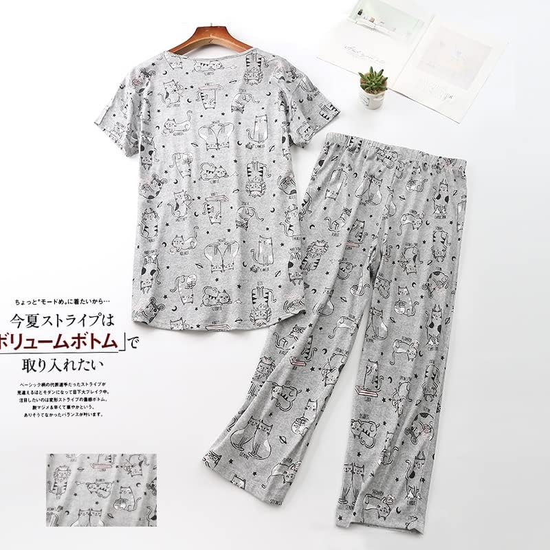 Womens Cotton Pajama Sets Short Sleeve Top with Capri Pants 2 Piece Sets for Women Summer Pajamas Lounge Set