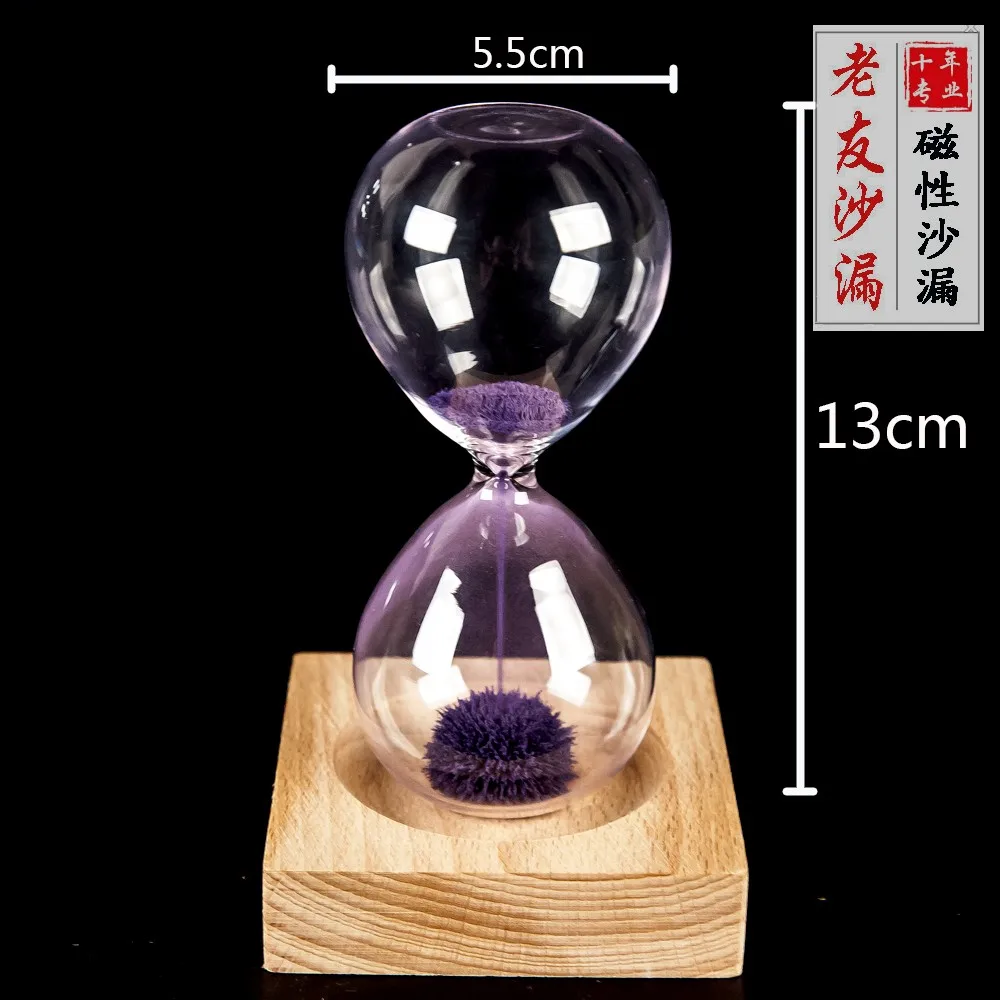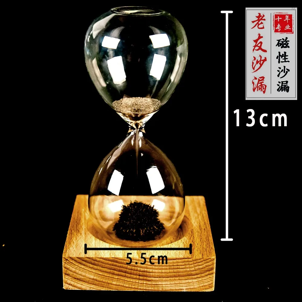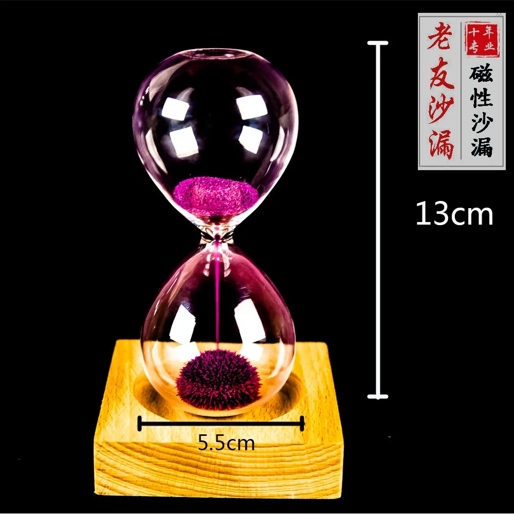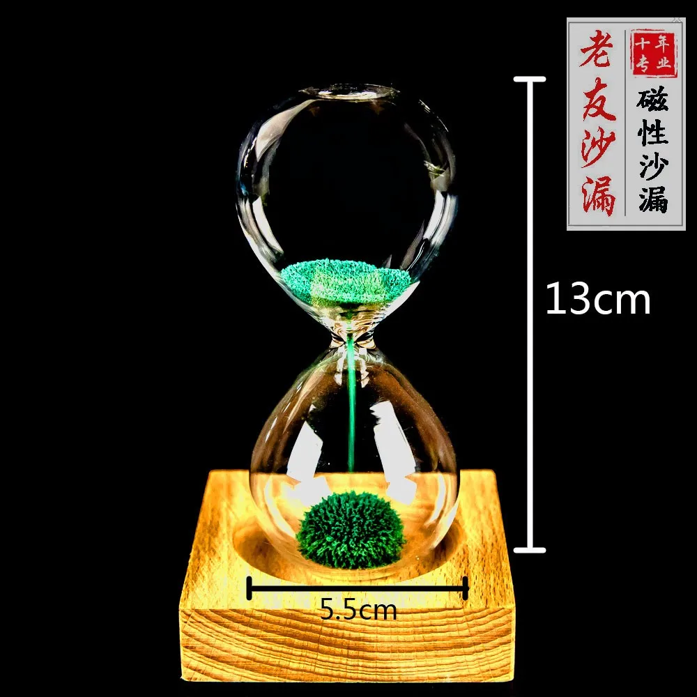 Wood Glass + Iron Powder Sand Flowering Magnetic Hourglass with Packaging Hourglasses 13.5X5.5Cm Wooden Seat Gift Presents
