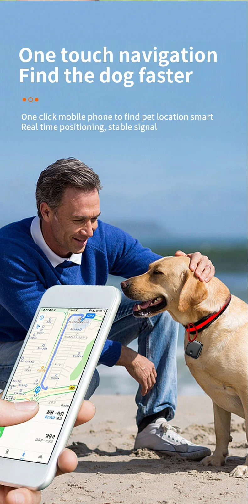3. One click mobile phone to find the pet’s location, intelligent real-time positioning, stable signal.